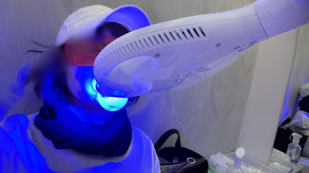 歯のホワイトニング中(筆者)